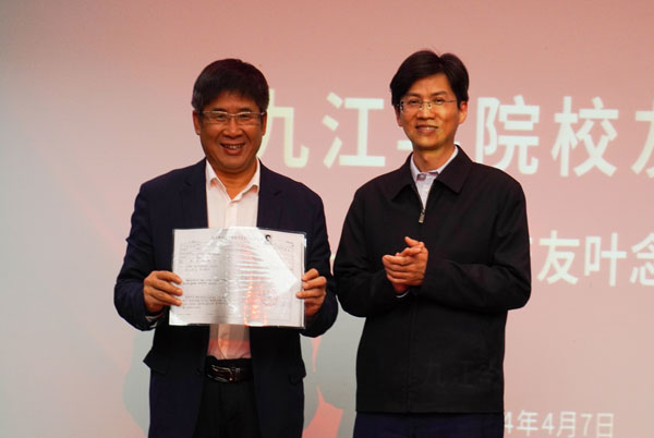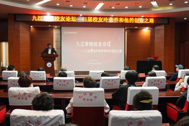 “校友回到九江学院就像是‘回娘家’。”叶念乔将改革开放发展与自身经历紧密联系起来,分享了他的求学求职经历——从生活条件的艰苦到家庭境遇的变化,从学生时代与数学的渊源,到发现计算机商机产生创业的萌芽。叶念乔以时间为节点,回顾了投身教育行业的机遇与挑战。通过回顾自身经历,他总结了三点经验:一是苦难是笔财富,二是学好通识知识很重要,三是情商和智商要兼顾。他寄语九江学院学子要有坚毅的品质,学好专业知识,不断丰富自身素养,为九江学院的发展添砖加瓦。