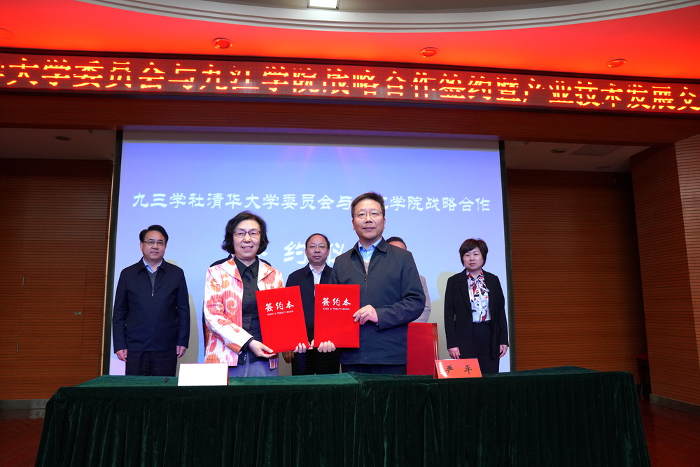 韩敏芳、严平代表双方签署了《九三学社清华大学委员会支援九江学院学科建设工作协议书》。根据协议,双方将在重点学科发展、科研团队建设、人才培养等方面开展深入合作。