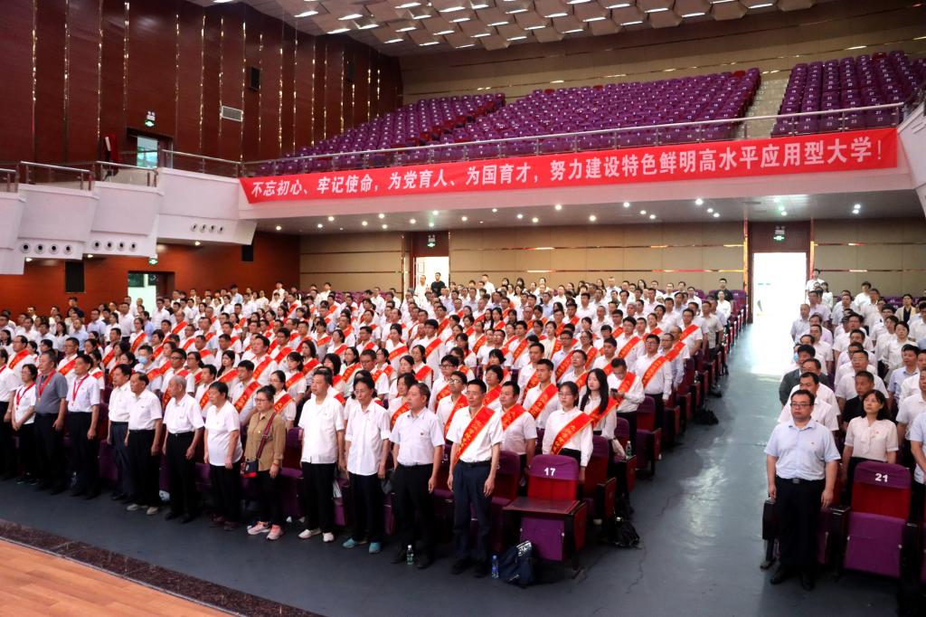 李明斌代表校党委向全校共产党员致以节日问候,向获得“光荣在党50年”纪念章的老党员老领导老同志们表示崇高的敬意,向受到表彰的先进集体和优秀个人表示祝贺。他号召各级党组织和广大党员向先进集体和优秀个人学习,胸怀“两个大局”、心怀“国之大者”,弘扬伟大建党精神,紧紧围绕建设特色鲜明高水平应用型大学建设目标,全面落实立德树人根本任务,以高质量党建引领高质量发展,奋力谱写学校事业发展新篇章。