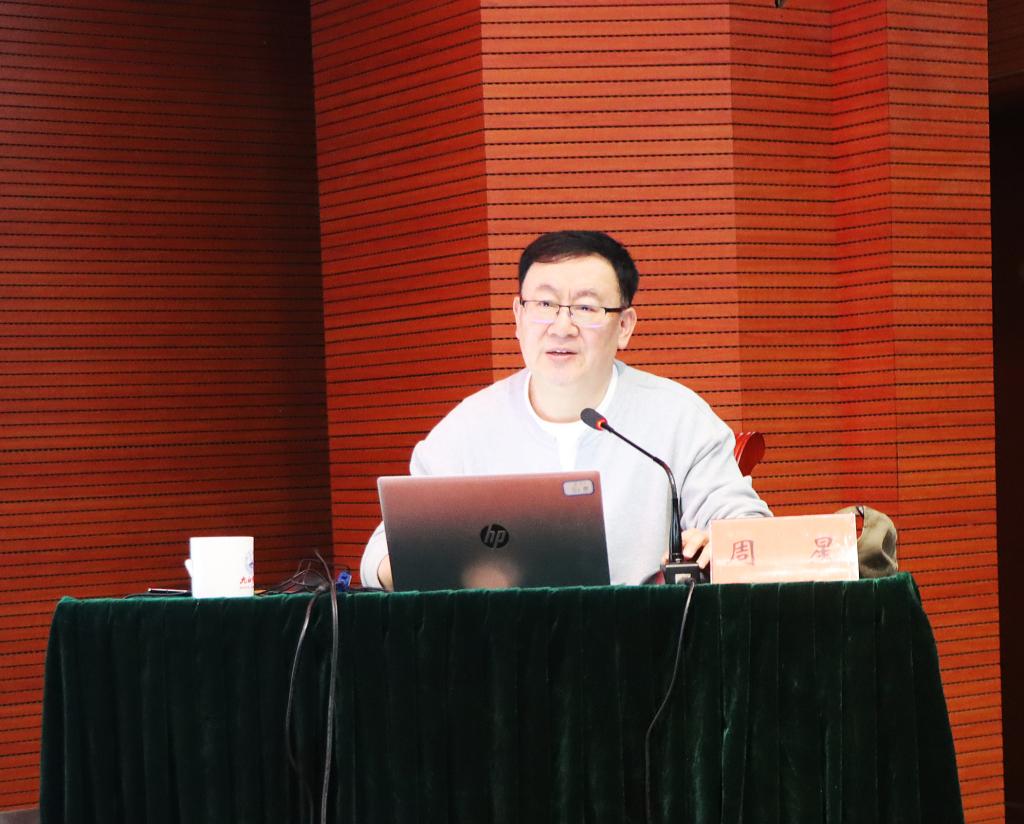 会议邀请北京师范大学艺术与传媒学院原院长周星教授作题为《习近平文化思想与中国式现代化艺术精神思考》的专题辅导。报告从习近平文化思想的时代价值、哲学意蕴、“两个结合”的精神实质以及用习近平文化思想指导高校美育工作等方面进行了深入阐述。