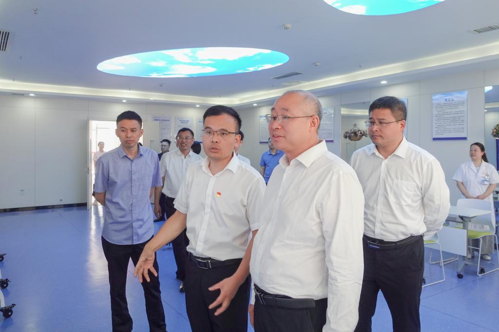 座谈会前,陈小林一行考察了修水县第一人民医院医学培训中心、临床技能操作培训中心、远程医学中心、学术报告厅、临床科室示教室、健康体育馆和医学大数据中心等教学场所建设情况。