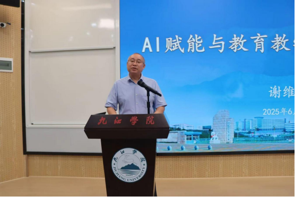 讲座中,谢维和教授以习近平总书记关于“推进人工智能全学段教育”的重要论述为切入点,深入阐释了人工智能作为教育强国建设重要变量的战略意义及其在教育领域的核心价值,对AI如何深度赋能教育教学改革进行了全景式、前瞻性的剖析。他指出,AI不仅能重塑人才培养目标和教育内容,更将深刻推动学习方式和教学范式的变革,在提高教学效率、实现因材施教等方面具有独特优势,但也存在技术的不确定性,需警惕过度依赖AI在削弱学生学习能力和知识保留方面的潜在负面影响。他强调,拥抱AI不是简单的技术叠加,而是推动教育理念升维与结构性变革,其关键在于如何将技术与教育规律深度融合,构建以学习者为中心的更加开放、灵活、智慧的教育新生态。他鼓励九江学院教师们要勇于探索,积极实践,成为这场教育数字化转型的推动者和践行者。