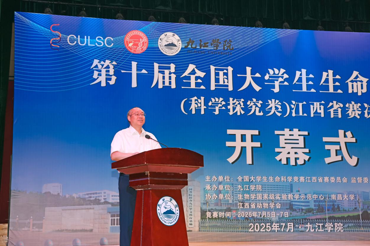 “作为承办单位,我们深感荣幸。此次竞赛不仅为全省生命科学领域的青年学子提供了展示才华的舞台,更为各高校间的学术交流搭建了重要平台。”在开幕式致辞中,校长陈小林向与会专家和参赛师生表示热烈欢迎,并简要介绍了九江学院及药学与生命科学学院的发展概况。他勉励参赛选手以饱满的热情和严谨的态度投入比赛,充分展现专业素养和创新精神。