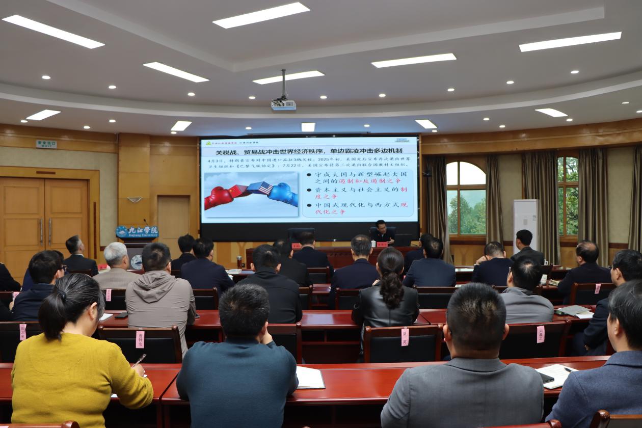 会议邀请省委党校(江西行政学院)党史党建教研部张师平博士作《习近平谈治国理政》第五卷专题辅导讲座。他从《习近平谈治国理政》第五卷出版的时代背景与重大意义、总体框架与鲜明特色、核心要义与实践要求三个维度展开深入解读,系统梳理了著作中贯穿的马克思主义立场观点方法。
