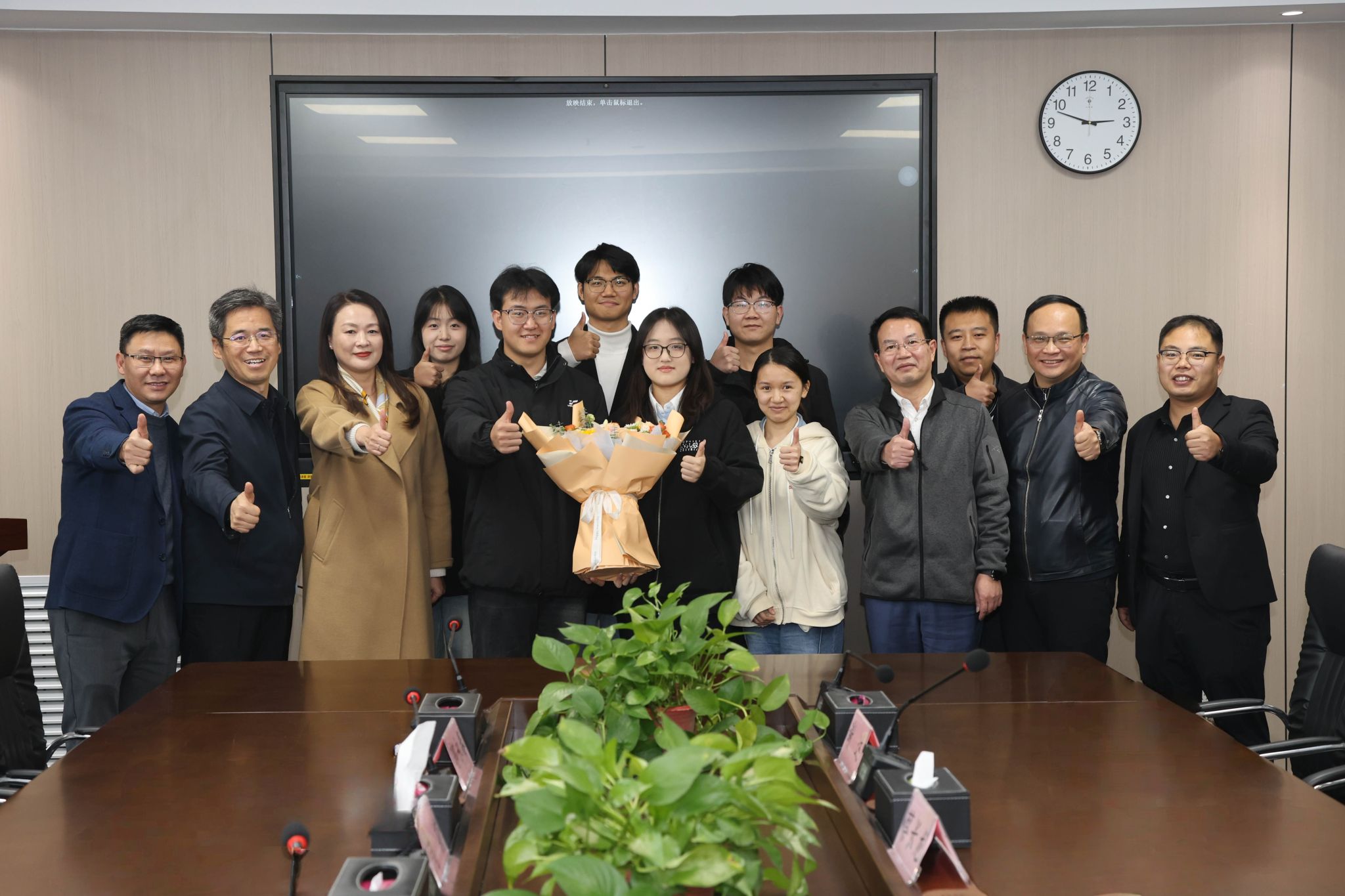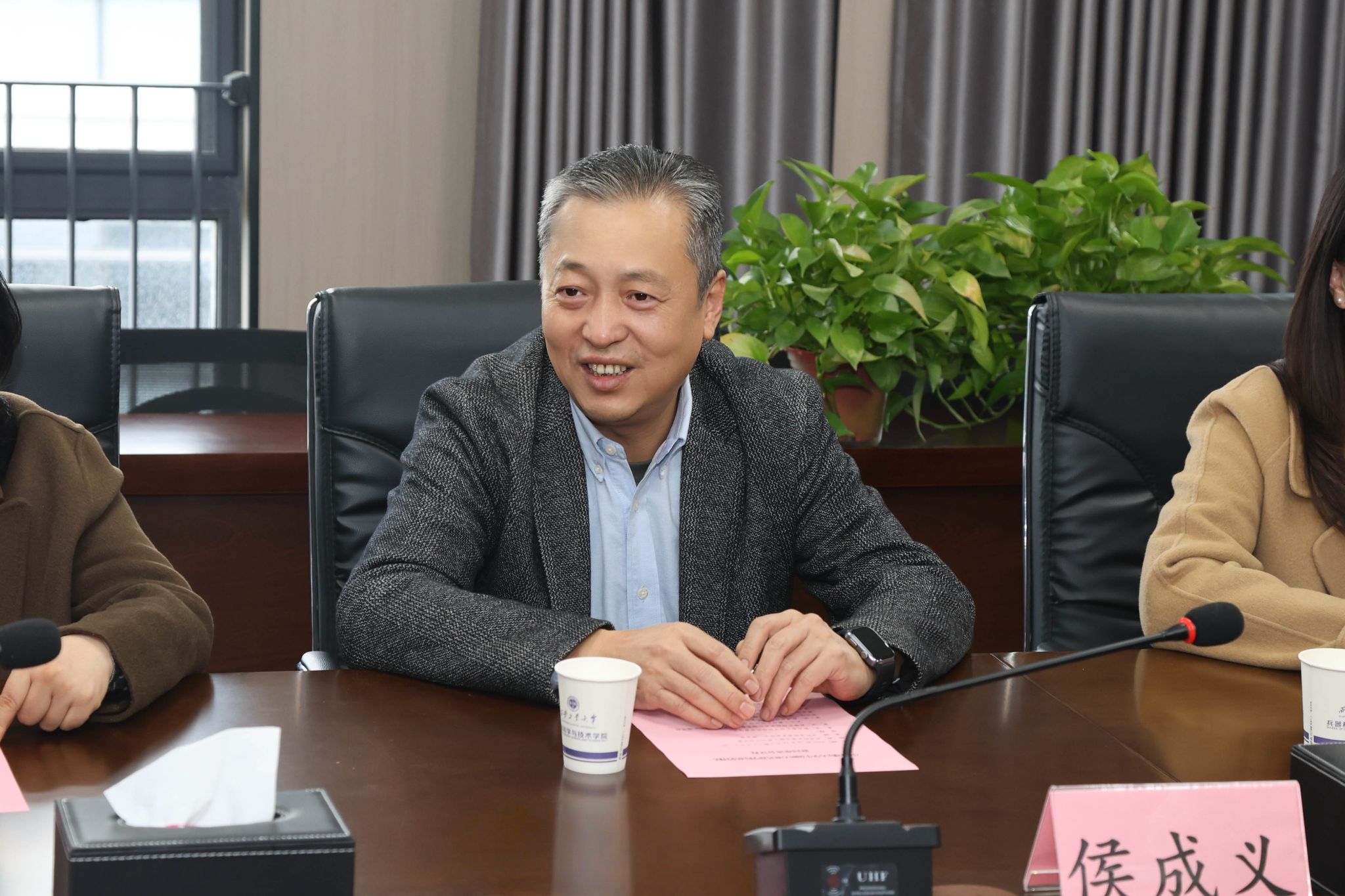 侯成义代表学校对团队表示慰问和祝贺。他指出,项目金奖突破难能可贵,为学校师生树立了榜样,各相关部门认真总结经验,加强协作,以学校目标责任改革为契机,建立相关绩效评价机制,强化结果运用,持续做好创新大赛后续策划和组织工作,要以大赛为牵引,提升学校科创水平,做好拔尖人才培养,提升创新型人才培养质量。