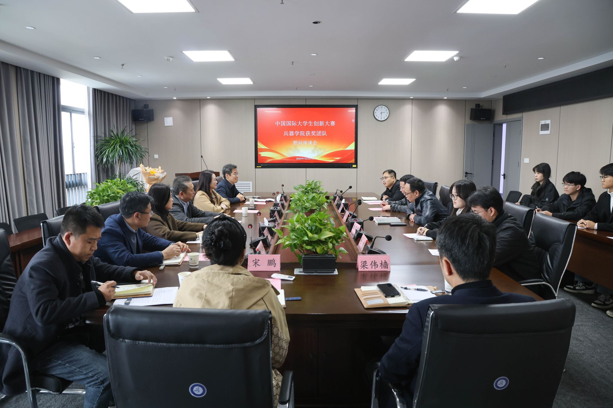 (本网讯)10月21日,校党委书记侯成义、副校长闫莉一行到兵器科学与技术学院慰问了在中国国际大学生创新大赛中获得金奖的项目团队成员,并与团队师生进行了亲切座谈交流。