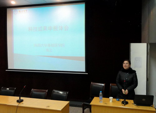 教研论坛活动上,高云教授从现行的国家各级科研成果奖励、科研成果申报的流程、科技成果鉴定形式、申报省级科技成果奖等方面进行介绍。并结合自己团队获得多项江西省科研成果奖励,详细介绍了申报体会及相关技巧,并重点介绍材料准备和常见问题分析,大家受益匪浅。