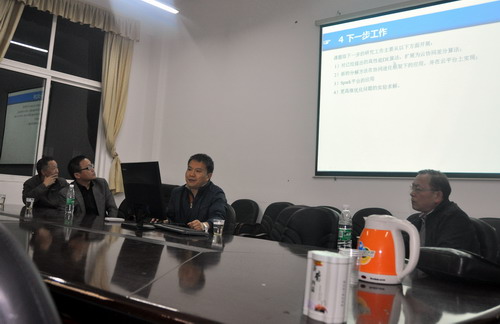 会后,李教授与国家基金项目《面向大规模优化问题的基于云计算模型的协同差分进化方法研究》团队教师、学院的博士进行了座谈。座谈会上,邓长寿副院长汇报了课题组目前的研究进展和下一步的研究计划。李教授肯定了他们的研究成果,并对他们的后续研究提出了指导性意见,同时对老师们提出的相关问题做了详细且生动的解答。