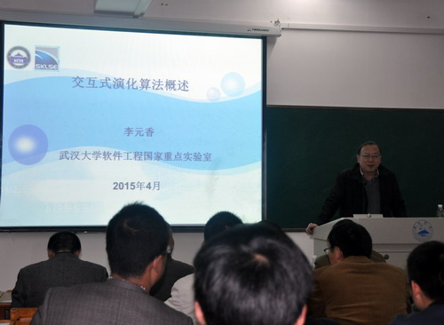李教授根据自己的研究,作了《交互式演化算法》的报告。在报告会上,李教授从优化问题、交互式演化算法、RS-IGA算法及其应用、基于朴素贝叶斯方法的个体适应值评估、基于支持向量机的个体适应值评估、交互式演化算法平台设计、总结与展望几个方面来进行阐述。