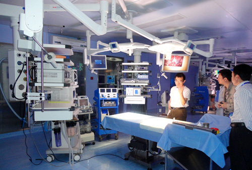会议期间,黄啸林副院长等人还参观了亚洲领先的“柯惠临床培训中心”。该中心为全球第四家,占地面积3000平方米,建有11个手术间、1间手术模拟操作室、1间肺部肿瘤导航培训室、1台一体化手术台,中心将外科所需的所有设备和尖端技术完美的结合并组成一套一体化系统,并有四间麻醉及重症监护培训室,DSA一体化复合手术室及DSA-3D腔镜复合手术室等,中心各临床设施均具有远程传输功能。参观后大家颇受启发,为临床医学院/附属医院临床技能室及全科医生培训基地的建设提供了参考。