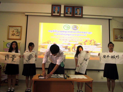 帅式毅在赛后鼓励中学生们继续加强汉语学习,积极参加孔子学院组织的汉语考试,开启另外一扇通向中国大学的大门,亲身体验书本上的中国文化知识,也可更好地把柬埔寨灿烂的文化介绍给中国人民。