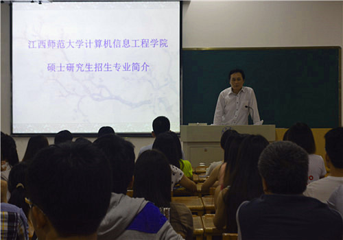 讲座中,谢旭升教授首先通过一段精彩的宣传片,让同学们从学院规模、学院历史、师资队伍等方面对江西师范大学计算机信息工程学院的概况有了简单的了解。随后,谢教授又介绍了研究生招生政策和研究生培养的平台,重点讲到报名方式、考试时间、考试科目、学习方式、培养目标、研究方向、毕业与学位的相关信息以及奖学金机制。他鼓励大家积极考研,并欢迎大家报考江西师范大学计算机信息工程学院。整个讲座激情洋溢,同学们受益匪浅。