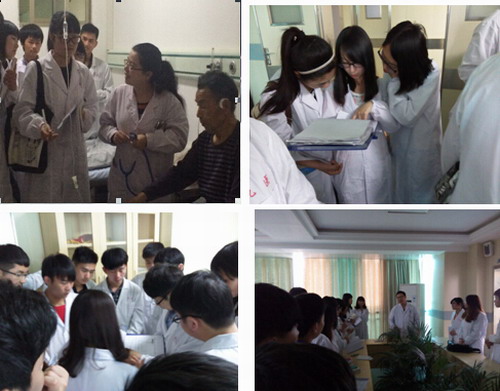 基础医学院病理教研室以九江学院校级教改课题《农村定向医学生病理学教学改革研究》立项为契机,经过前期认真精心的筹备,在医学部向维聂副主任、基础医学院郑美蓉副院长、病理教研室胡志红主任、人体解剖学李立新副主任和附属医院教务科洪永春副科长及心血管内科唐新虎主任、呼吸内科唐从发主任及消化内科蔡长春主任的大力协调和鼎力支持下,4月22日至5月20日,病理解剖学与人体解剖学及临床相关科室联组教学活动在2013级临床医学农村定向班顺利开展。