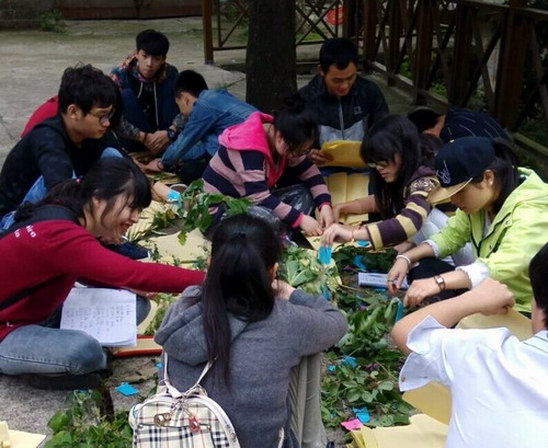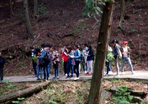 一般三十人左右一个小组,分别由植物学专业老师带领,认识庐山各种植物。为了安全管理,一般每个班还安排班主任或辅导员跟随。庐山由于山地自然条件的复杂性,许多植物比平原更有条件保存下来,为保存古老类型如鹅掌楸、擦木、大血藤、紫树等提供了有利条件。一出门,到处都是植物,带队专业老师随手指一棵植物就开始滔滔不绝地给同学们介绍起来了,“这是羊蹄,廖科,它啊,可以治疗便秘啊,跌打扭伤;这是牯岭牯凤仙花可以止痛,肚痛啊,牙龈溃烂啊……”同学都争相围着老师,希望能多学到一些知识。