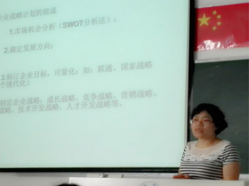 5月20日下午,程书香老师在义丰楼404为电商A1332班学生讲授《市场营销学》公开示范课,学院领导及市场营销教研室10名教师观摩了此次公开课活动。程书香老师从加多宝与王老吉的凉茶之战开始,在与学生的问答之中,诠释了加多宝借助广告和赞助中国好声音,以移魂大法实现了战略目标,获得了巨大的成功。以生动的案例入手,引入了企业战略计划组成的四个内容,即市场机会分析、确定发展方向、制定企业目标和制定企业战略,并具体讲述了SWOT分析的用途、目的和内容。参加听课的老师普遍认为,程老师备课充分,条理清晰,知识点讲解透彻,案例引用合理,大家都深受启发。
