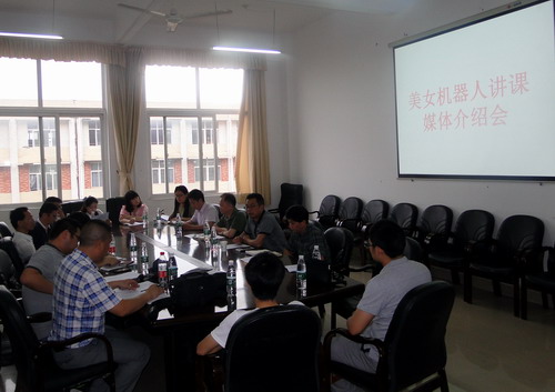 近日,我校信息学院张广顺研发团队研制的美女机器人小美老师为学生上课的消息,引发了省市媒体的关注。众多媒体记者纷纷要求来校采访报道。6月3日下午,党委宣传部和信息学院联合在厚德楼521召开“美女机器人媒体介绍会”,向媒体全面展示机器人小美讲课的风采和研发过程和体会。江西日报、江南都市报、信息日报、中国江西网、今视网、九江日报、九江广播电视台等省市媒体近20名记者及党委宣传部、信息学院相关领导、机器人研发团队成员参加了介绍会。党委宣传部副部长何桂林主持会议。