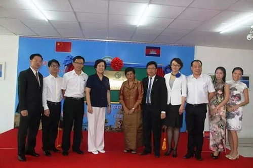 仪式上,彭萨格那部长,布建国大使等共同为“金边中国文化之家汉语中心”成立揭牌。