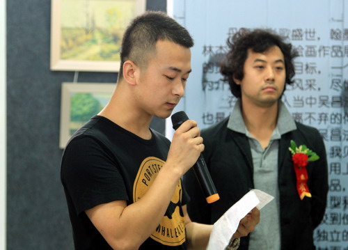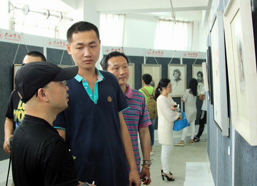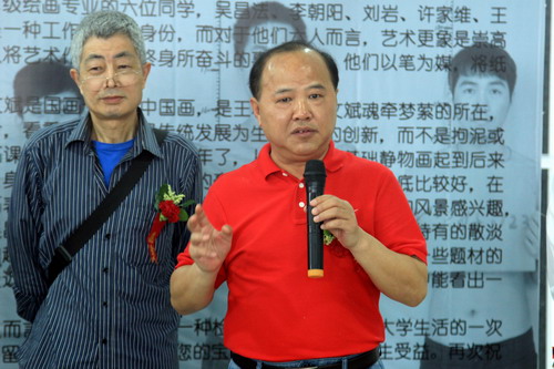 王春生书记在讲话中高度评价了“你好 · 123”六人作品展的主办者,他们自进校以来执着追求着绘画艺术,这次展出的70余幅,涉及油画、国画、素描等画种,题材广泛,风格多样。这是艺术学院以寝室为单位举办画展的第一次,展示了我们学院的寝室文化氛围,我们同学执着学习的精神。