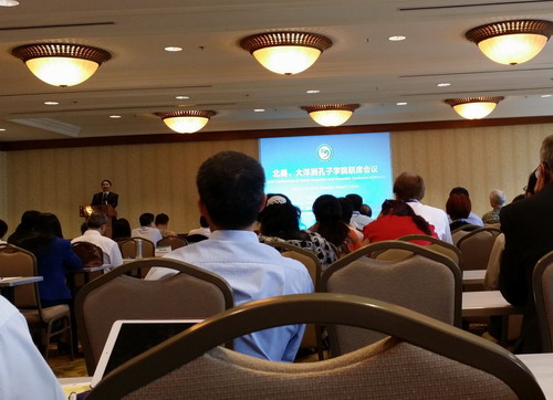 为交流孔子学院办学经验,进一步提高办学质量和水平,促进孔子学院可持续发展,根据孔子学院总部安排,萨凡纳州立大学孔子学院中外方院长应邀参加了6月21-22日召开的“2015北美、大洋洲孔子学院联席会议”. 孔子学院总部总干事许琳女士,副总干事王永利先生;中国驻洛杉矶总领馆总领事刘健先生,教育组参赞袁东先生;孔子学院总部美大处的领导;部分大学校长及美国、加拿大、澳大利亚、新西兰、斐济孔子学院中外方院长约300人参加了此次会议。