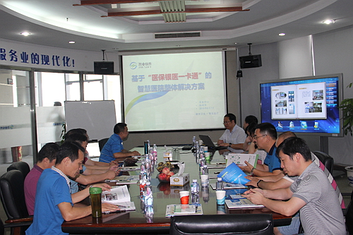 随后,在考察农行九江分行的委托公司——厦门智业软件股份有限公司及厦门云顶伟业信息技术有限公司时,陪同工作人员详细介绍了数字卫生城市解决方案,并做了《基于“医保银医一卡通”的智慧医院整体解决方案》汇报。