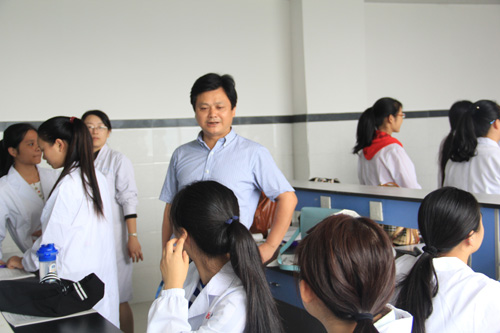检验科何巍巍老师分理论教学和实验示范两部分,详细讲解了“活化部分凝血活酶时间测定”和“血浆凝血酶原时间测定”两个实验。何老师准备充分,条理清晰,深入浅出地进行授课,风趣幽默的语言吸引同学们聚精会神听讲,积极互动,课堂纪律良好。胡副院长对同学的实验操作进行指导,激发同学们的发散性思维,并亲切询问同学们在焕然一新的实验室的听课感受。同学们高兴地说,感觉很好,教室亮堂、宽敞,实验设备齐全。