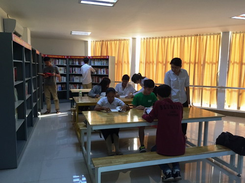 11月16日,柬埔寨王家研究院孔子学院亚欧大学中文系“大使图书角”启动使用,孔子学院亚欧大学中文系学生有了自己的中文图书室,中文系的学生在课余时间纷纷到图书角看书、借书,并带着学习上的问题向值班教师陈晶雯咨询。