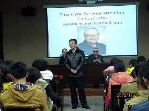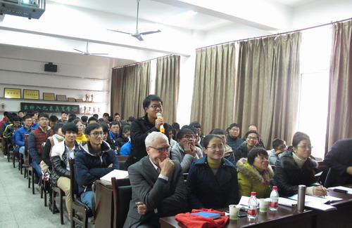 在提问环节中,同学们反应热烈、积极提问,张博士和Torben Sønnichsen教授对同学们的问题进行了耐心细致的回答。大部分同学用英语和Torben Sønnichsen教授交流,提出了很多专业性问题,开拓了同学们的专业视野,同时也锻炼了英语的口语水平。