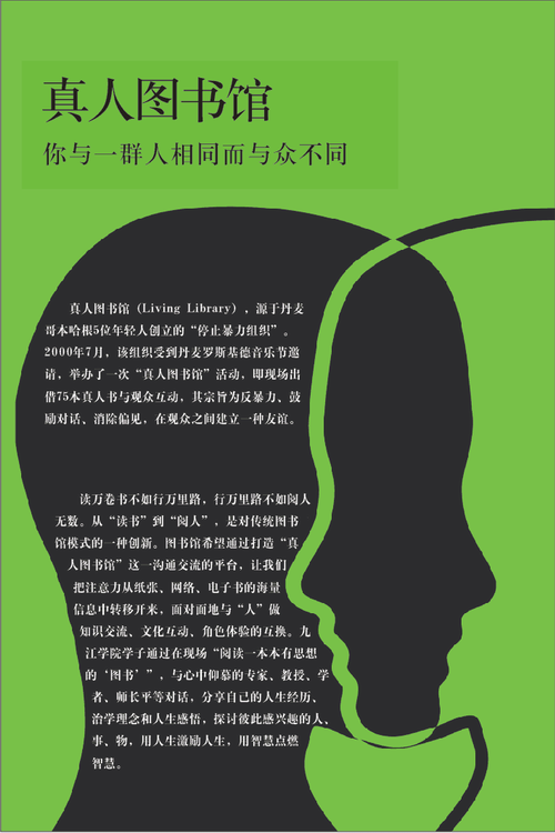 “真人图书馆”,顾名思义,是通过读者与真人图书面对面阅读交流的形式进行对谈,读者可以通过阅读真人图书来探知与自己不同的世界和观念,分享人生经历、治学理念和人生感悟,探讨彼此感兴趣的人、事、物,实现畅快的平等对话。人们常说,“读万卷书不如行万里路,行万里路不如阅人无数”。图书馆希望搭建这样一个平等有效的交流平台,打破呆板的说教习惯,让同学们阅读有着独特人生经历与丰富经验的“真人书”,与心中仰慕的专家、教授、学者、师长平等对话,丰富见闻,消除偏见,建立友谊,营造良好的学习、分享、收获和关怀的校园文化。