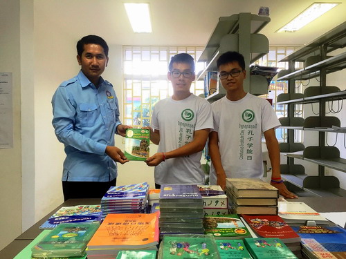 此次赠书由茶胶省汉语中心志愿者教师负责人余洲发起申请,得到孔子学院院长的大力支持,共筛选了三套不同难度的汉语教材、考试教辅和大量课外读物,在茶胶省青年联合会的图书馆建立起了完整的汉语学习进阶体系。