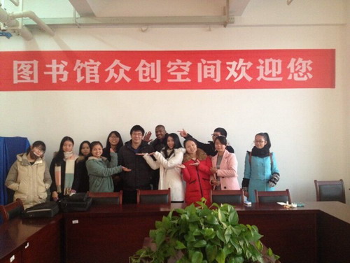 郑老师和同学们对众创空间的设立一致表示赞赏。对于同学们来说,图书馆是同学们学习交流最理想的环境。尤其是众创空间这个有声的交流平台,是同学们一直期盼的一个空间场所。在这个空间里,老师和同学们一起进行平等、轻松和自由的交谈与交流。教学相长,通过此次座谈会,老师和同学们都非常的有收获。郑老师希望,来年的学生毕业论文答辩,再到图书馆的众创空间来进行。