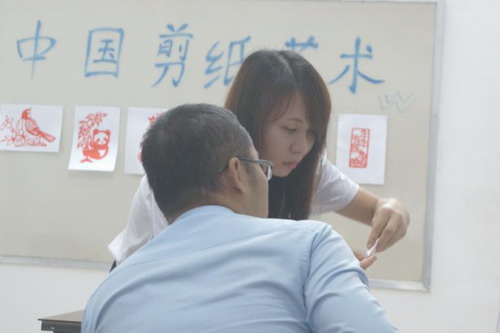 活动最后,学生们纷纷与自己的剪纸作品合影留念,还一起将他们的剪纸作品贴在教室内作装扮,整个教室瞬间充满了一股浓浓的中国风。