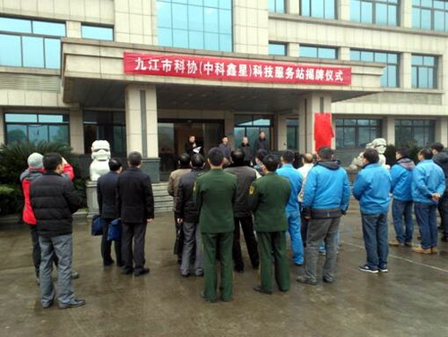 为推进产学研转化,加强校企合作,实现互利共赢和谐发展,九江市科协联合九江学院化学与环境工程学院,以中科鑫星新材料有限公司为基地建立了科技服务站。该站点于2015年12月24日在中科鑫星公司揭牌,九江市科协主席丁冰洋、副主席欧阳长茂、黄建华、九江市专利局局长胡德彪、九江市环保协会高级工程师欧阳树远、秘书长方先平、中科鑫星董事长周庐和九江学院化环学院院长严平等人出席,丁冰洋和周庐分别致辞,指出科技是企业发展的重要推力,表达了对科技服务站建立的深远意义和美好愿景。