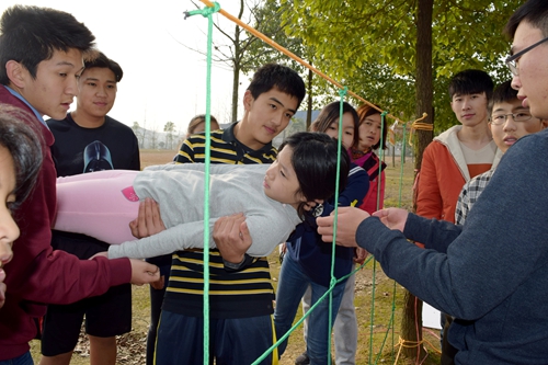 2015海外华裔青少年“中国寻根之旅”冬令营营员参加学校野外生存拓展活动