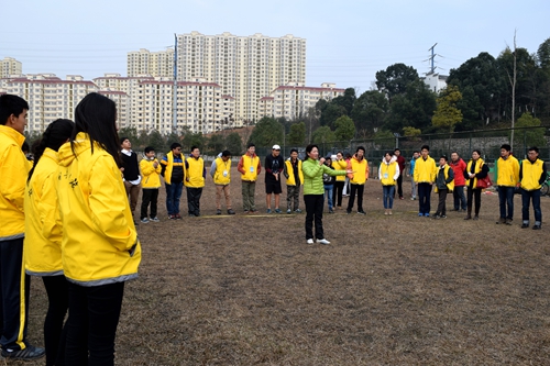 12月29日下午,九江学院野外生存队的教师在学校的拓展训练基地和海外华裔青少年“中国寻根之旅”冬令营营员们共同展开了一次别开生面的野外生存实践活动。体育学院杨勤、占玉珍、吕冬生、王利锋等教师指导了此次实践活动。