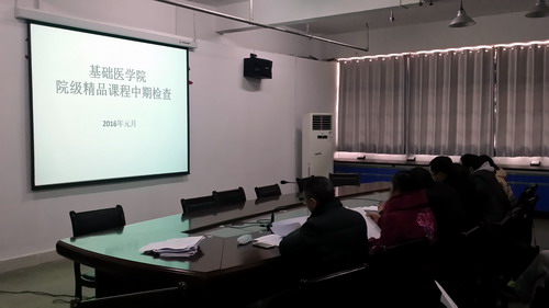 为做好教育部、江西省 “卓越医生”教育培养计划项目,基础医学院教务科组织学院教学指导委员专家,于2016年1月8日上午,在浔东校区华文楼一楼115会议室,对2014年度院级13门立项的精品课程建设进行了中期检查。