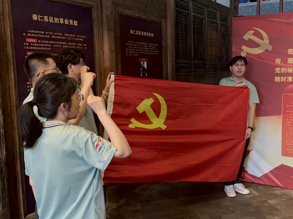 此外,服务队还开展了“重温红色记忆,共话初心使命”活动。队员们走访老党员,聆听革命历史故事,参观崇仁县第一党支部旧址,并重温入党誓词,接受了深刻的思想洗礼,坚定了理想信念。