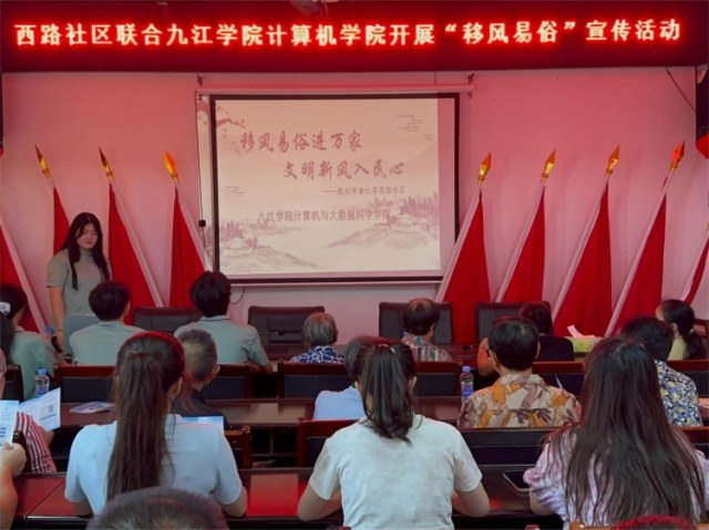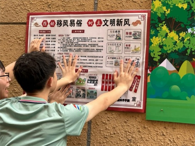 在“文明新风进万家,移风易俗促提升”活动中,服务队在新时代文明实验站开展了移风易俗实践,派发宣传传单,讲解新文明理念,并制作和张贴宣传海报,推动了社区文明建设。特别是在西路社区,队员们组织了专题宣讲活动,深入探讨了新风尚的实施,并普及了封建迷信的危害,获得了居民的积极反响。