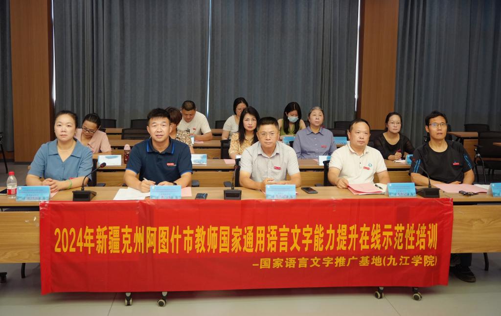 8月17日,我校举行国家语言文字推广基地对口新疆克州阿图什市教师国家通用语言文字能力提升在线示范培训班开班仪式。开班仪式以线上、线下相结合的方式同步举行。副校长、国家语言文字推广基地(九江学院)副主任李松志,阿图什市教育局党组书记、副局长马金龙出席开班仪式并讲话。