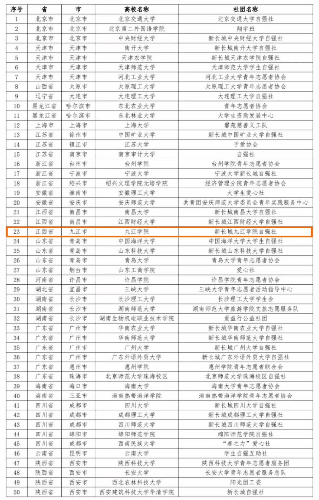 ​新长城九江学院自强社成功入选2024“善行100·温暖行动”