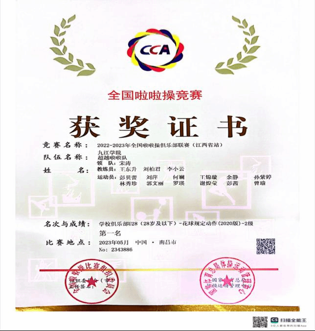 啦啦操队在2022-2023年全国啦啦操俱乐部赛(江西省站)中获得第一名
