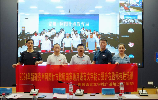 为加大国家通用语言文字推广力度,充分发挥国家语言文字推广基地示范辐射作用,提高民族地区、农村地区教师国家通用语言文字应用能力和教学水平,在教育部语言文字应用管理司、省教育厅语材处的指导下,国家语言文字推广基地(九江学院)与新疆阿图什市教育局进行了密切合作,从8月中旬开始,精心组织了为期一个月的2024年阿图什市教师国家通用语言文字能力提升在线示范性培训活动。