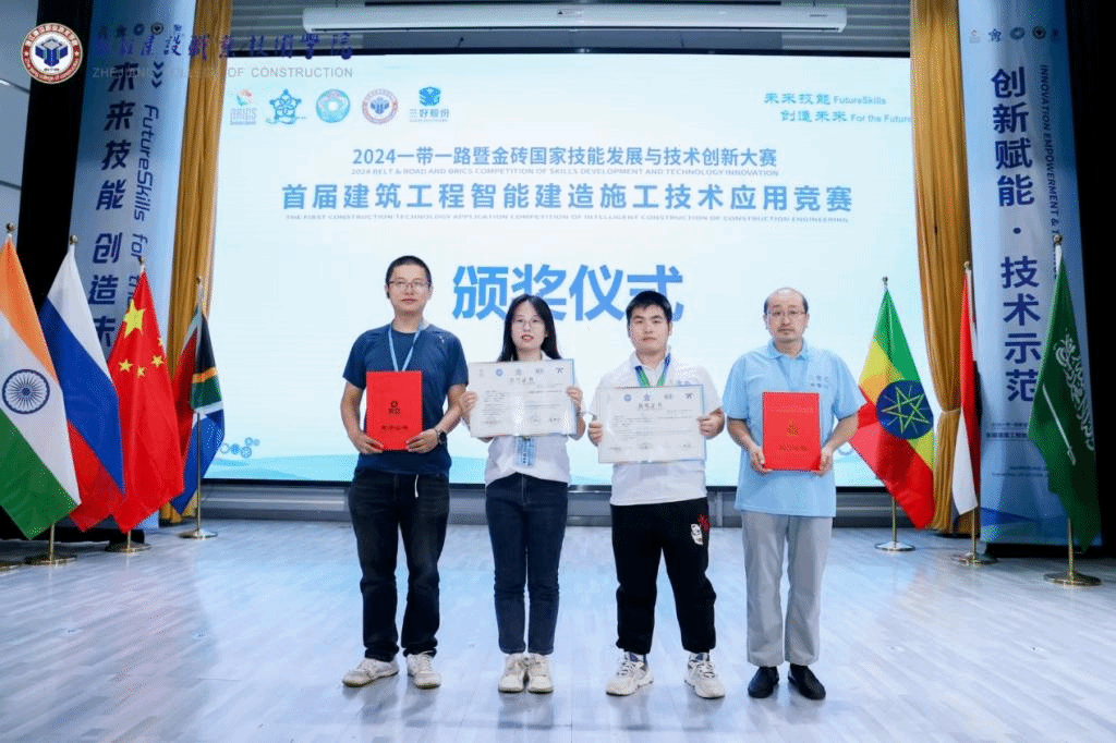 近日,2024一带一路暨金砖国家技能发展与技术创新大赛首届建筑工程智能建造施工技术应用赛项全国总决赛在杭州圆满落幕。本届智能建造赛项决赛经过前期覆盖全国600余所高校的校园赛及区域选拔赛,最终415支队伍入围总决赛。我校建工学院张丽凡,袁神明两位同学参加此次比赛,经过激烈比拼,最终荣获本科组二等奖;我校获得“优秀组织奖”,指导教师张静、刘洪佳获“优秀指导教师”荣誉称号。