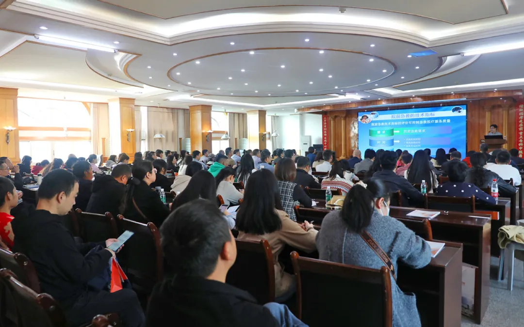副校长雷志强致辞,他指出,九江市“救在身边”志愿服务项目正式启动,是认真贯彻落实党的二十大精神、习近平总书记重要指示精神,推进健康中国建设的重要举措,是突出预防为主,以健康为中心,积极有效应对当前突出健康问题的具体行动。附属医院作为承办单位,一直致力于提升医疗服务水平,今年7月江西省脑血管病区域医疗中心正式投入使用,医院以五大中心为抓手,全面推动构建急危重症区域协同救治体系,着力织密织牢守护九江及周边地区群众生命健康安全网。以“救在身边”项目为契机,附属医院将持续加强急救志愿服务队伍建设,不断提升急救志愿服务的品质与效率,确保在关键时刻,能够迅速、准确地为人民群众提供生命线上的援助。