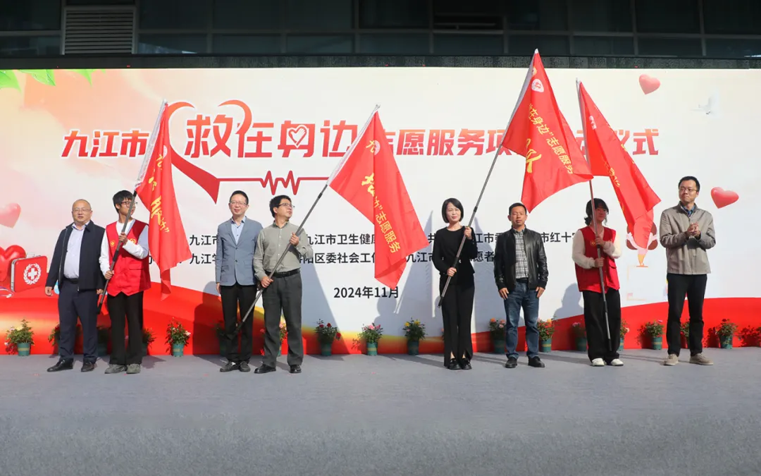 11月3日上午,由九江市委社会工作部、九江市卫生健康委员会、共青团九江市委、九江市红十字会、九江学院附属医院联合打造的九江市“救在身边”志愿服务项目启动仪式,在九江学院附属医院省级区域医疗中心前广场举行。
