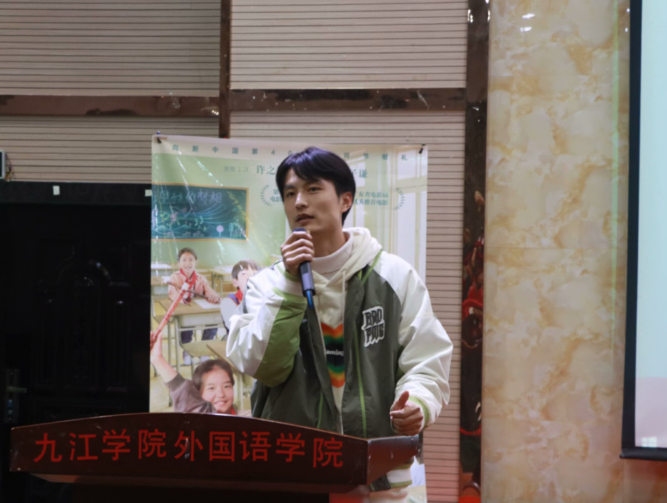 12月26日晚,电影《音乐课》高校巡映活动在九江学院香远楼报告厅举行。该片由江西省教育厅、江西电影集团等单位联合摄制,取材于“全国模范教师”肖惠文的真实事迹。影片导演周勇携肖惠文老师亮相,与观众分享了影片拍摄过程中的趣事和创作感悟。九江学院学生工作处、省寓专委等相关负责同志以及九江地区高校约三百余名学生到场观看。