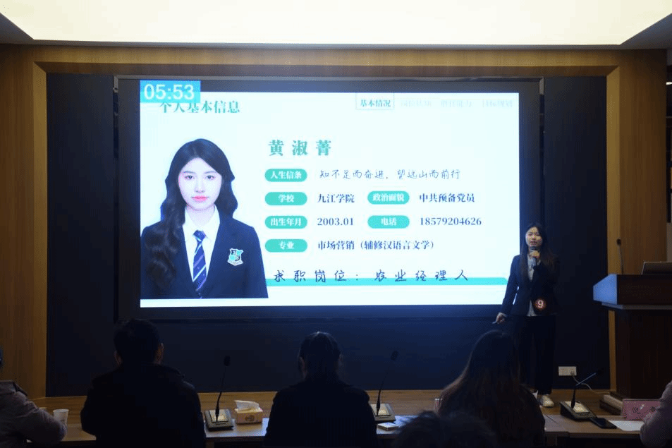 校赛决赛分赛道依次进行主题陈述、评委提问两个环节。江西鑫农康食品有限公司总经理腾旭、九江正大饲料有限公司人事经理石天煜、深圳慧通商务有限公司江西终端九景区域HRD郭瑶瑶、北京东大正保科技有限公司江西区总经理何志强、九江绿发碳资产管理有限公司董事长樊后晚、江西多集互动科技有限公司总经理代凯、护理学院人文教研室主任倪竞、管理学院人力资源教研室主任张科静等校内外专家应邀担任本次大赛评委。大赛评委重点考察大学生的求职实战能力、就业能力与职业目标和岗位要求的契合度等,从选手素质、契合程度、发展潜力、目标规划等方面,多维度多层次进行评分。