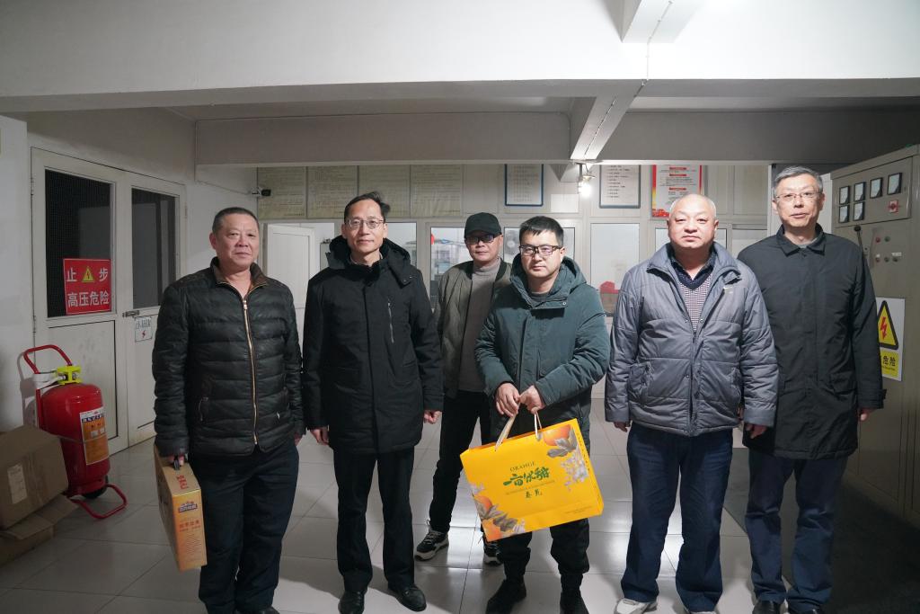 “大家辛苦了!新年快乐!”王殿元向坚守在一线的值班职工送上节日祝福,对他们的辛勤付出表示赞赏和感谢,并送上慰问礼包。