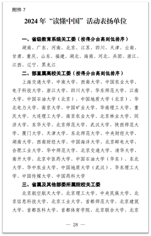 近日,教育部关工委发布《关于公布2024年“读懂中国”活动入选作品名单的通知》(教关委函〔2024〕18号),我校获评“2024年‘读懂中国’活动表扬单位”。