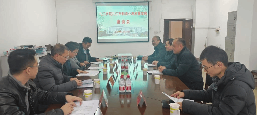 2月20日,九江市工信局副局长夏灵林、九江市产教融合促进会副会长兼秘书长戴丽梅带领“九江制造业高质量发展”调研组汇同九江市政府第三参事调研组部分成员一行到九江学院,在科研处(社会服务办公室)会议室召开九江市制造业高质量发展座谈会。