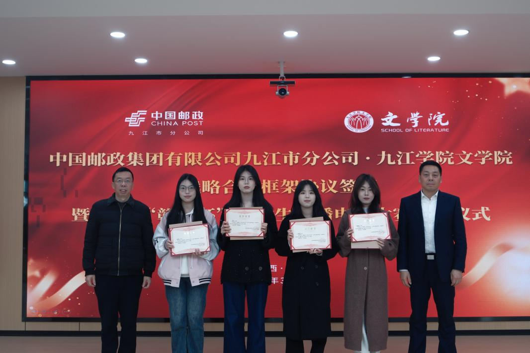 签约仪式上,文学院与中国邮政九江市分公司签署战略合作协议。根据协议内容,双方将在主题邮局建设、文化创意开发、直播电商实践基地共建等领域展开深度合作。